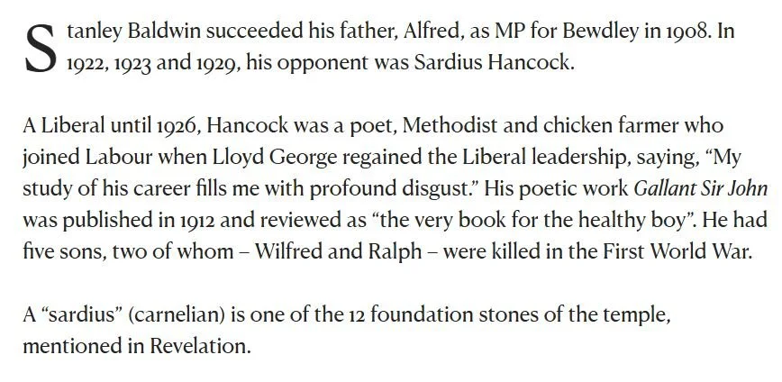 I wasn’t aware that my great-grandad, Sardius Hancock, was quite a character. He was a poet, politician and chess player. This text is from The New Statesman in 2014: