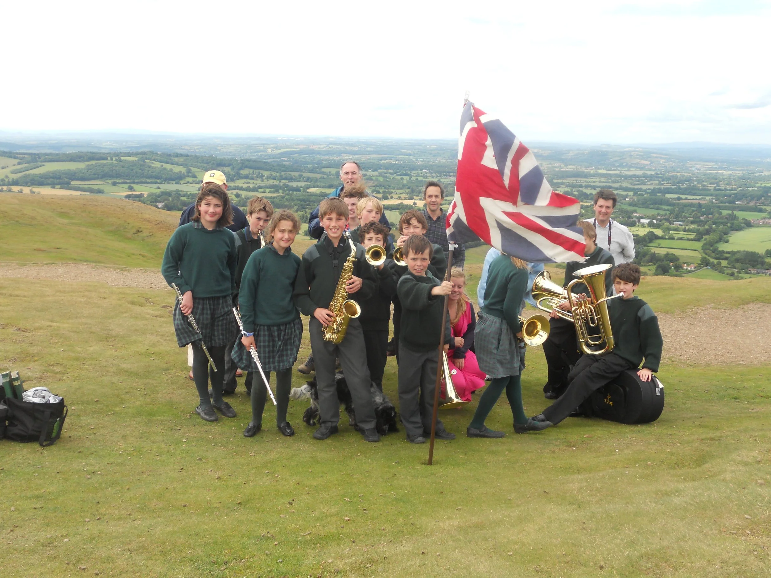 To get pupils to Elgar’s Birthplace in Broadheath, Worcestershire and see the Malverns from his garden gives you a sense of the composer. So, in 2011 I took a minibus of Beaudesert musicians there and played a concert to the public in the Carice Room. Having grabbed fish and chips we drove to the Malvern Hills. Pupils, parents and dogs all climbed the Beacon where, at the summit, I hoisted the Union Flag (on my washing line pole) and the assembled ensemble played ‘Land of Hope and Glory’… and the sun shone. What a glorious day that was!! (Click on the photo below for more pics…)
